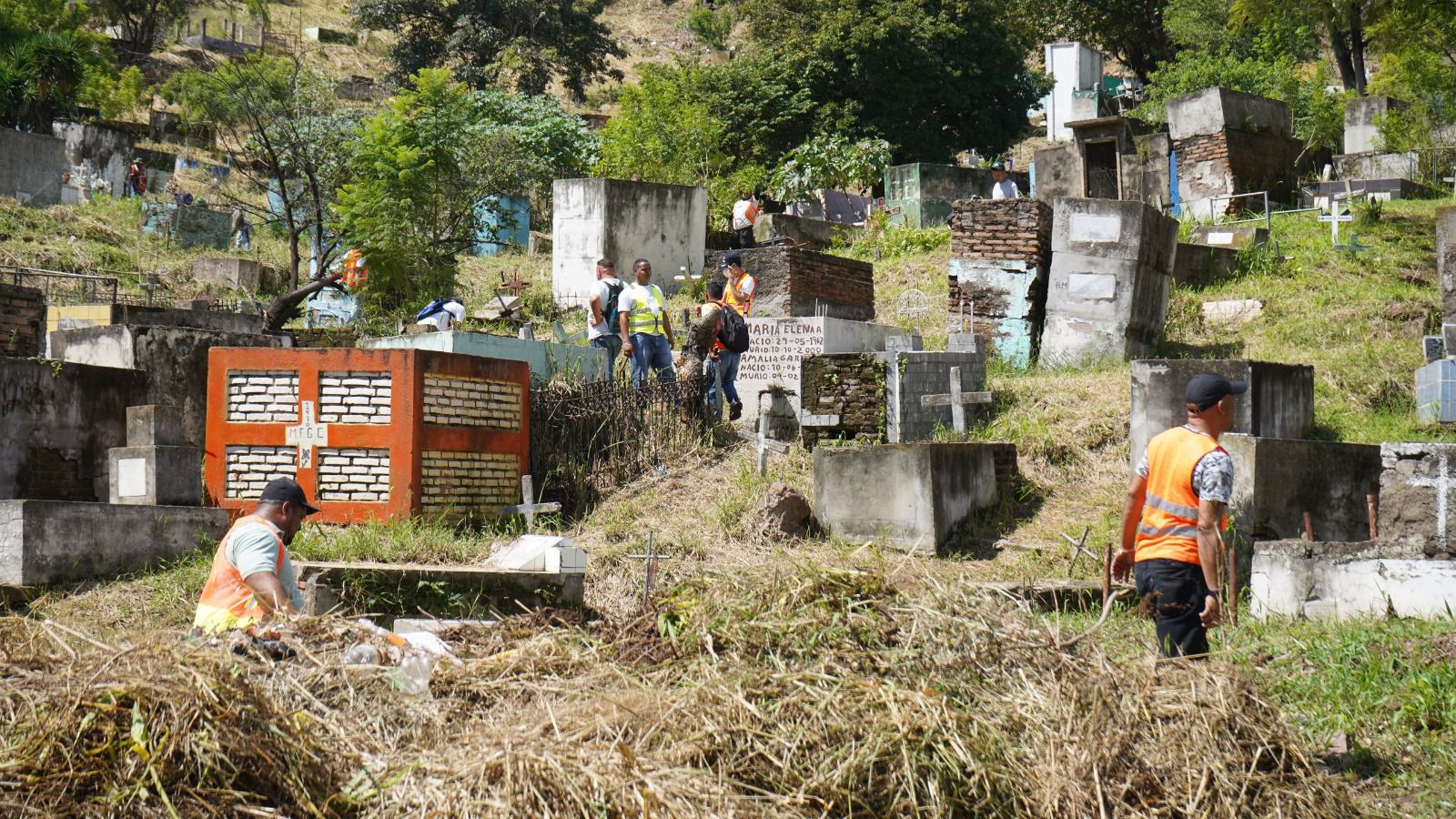 Cada año, miles de familias acuden el 1 y 2 de noviembre a los camposantos para coronar a sus difuntos, por lo que cuadrillas municipales ejecutan labores intensivas de corte de maleza, chapeo, limpieza de tumbas, eliminación de desechos, fumigación, poda y rehabilitación de áreas comunes, generando un ambiente limpio y espiritual para los visitantes.
