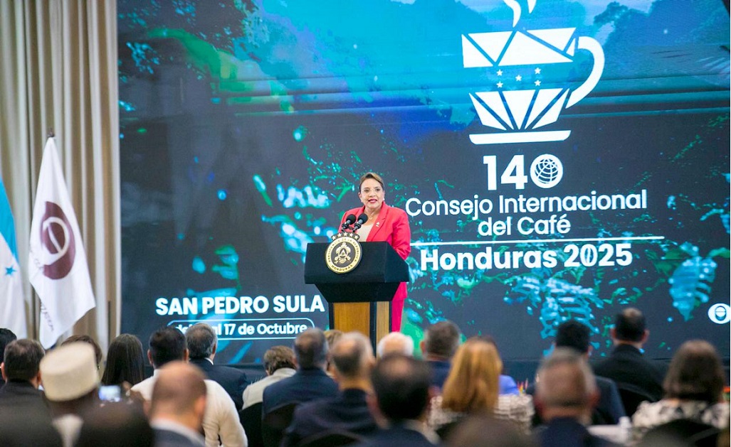 San Pedro Sula, Honduras.- La presidenta de Honduras, Xiomara Castro, propuso este lunes, ante la Organización Internacional del Café (OIC), «crear un fondo internacional para la justicia cafetalera» que «garantice precio justos y crédito verde para los pequeños productores».