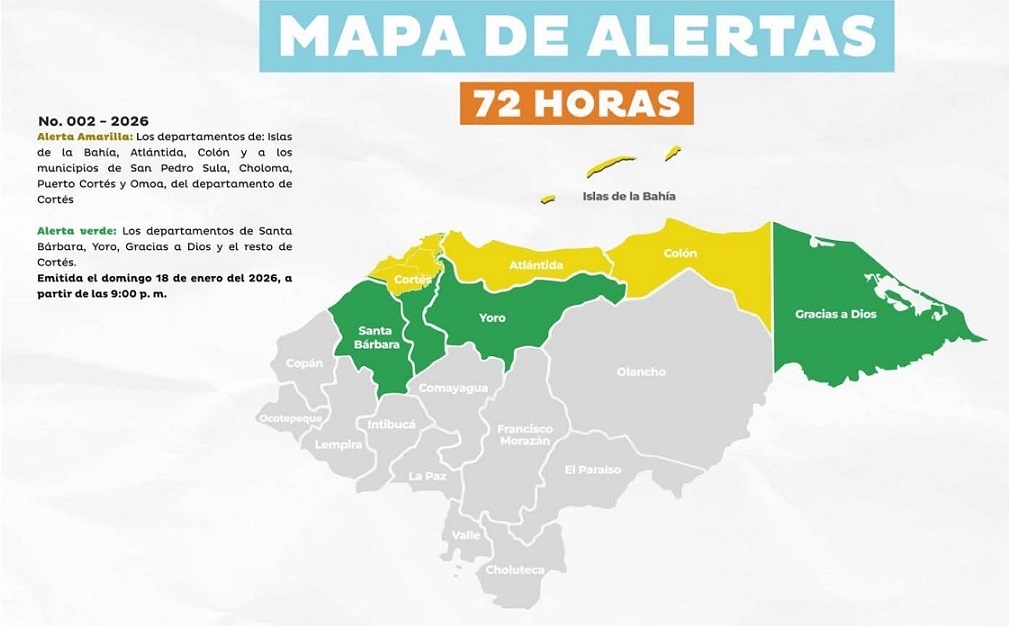 Tegucigalpa, Honduras.- La tensión climática vuelve a encender las alarmas en el país. La Secretaría de Gestión de Riesgos (Copeco) decretó Alerta Amarilla en Islas de la Bahía, Atlántida, Colón además de San Pedro Sula, Choloma, Omoa, Puerto Cortés, mientras el resto de zonas bajo vigilancia permanecen en Alerta Verde, ante la inminente llegada de un frente frío con alto potencial de impacto.