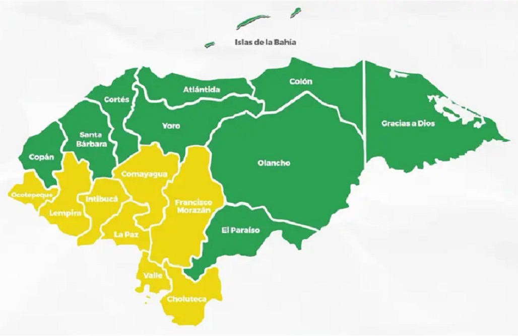 Tegucigalpa, Honduras.- La Secretaría de Gestión de Riesgos y Contingencias Nacionales (Copeco) ha emitido una alerta para todo el territorio de Honduras debido a las lluvias intensas que azotan el país. Ocho departamentos se encuentran bajo Alerta Amarilla y diez más bajo Alerta Verde, en un período de 24 horas a partir de las 4:00 p.m. de este viernes.
