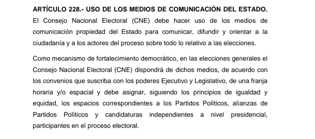 Durante la sesión del pleno, López hizo referencia al artículo 228, que establece el deber del CNE de utilizar los medios estatales para informar, orientar y difundir contenido electoral, beneficiando tanto a la ciudadanía como a los actores políticos. La iniciativa busca que el espacio público sea utilizado como una herramienta de transparencia democrática y no como un recurso exclusivo de quienes detentan el poder.