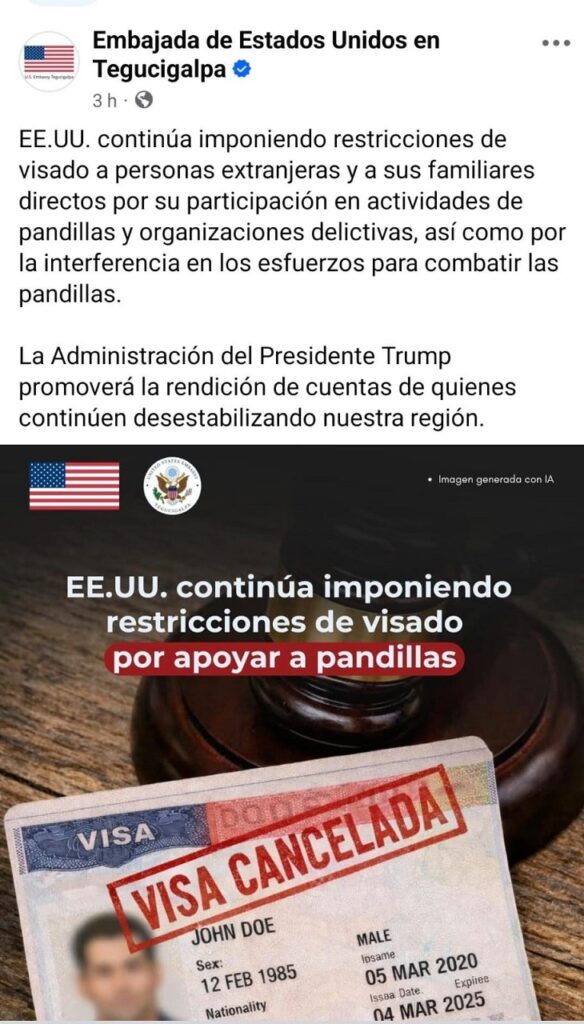 Tegucigalpa, Honduras.- La Embajada de Estados Unidos en Honduras lanzó una advertencia contundente que sacude el tablero regional: el gobierno estadounidense mantiene firmes restricciones de visado contra personas extranjeras vinculadas a pandillas u organizaciones delictivas, medida que ahora también alcanza a familiares directos de quienes integren estas estructuras o interfieran en su combate.