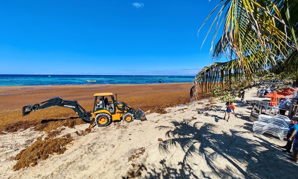 Gobierno despliega maquinaria por sargazo en RoatánGobierno despliega maquinaria por sargazo en Roatán