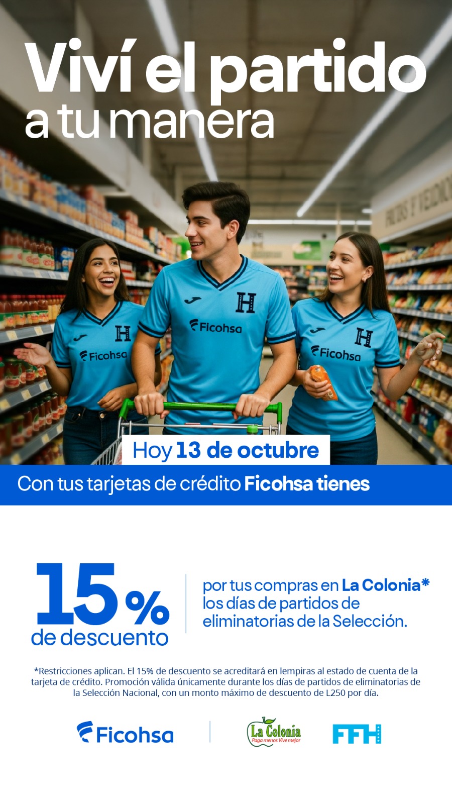 Tegucigalpa, Honduras.- Este lunes 13 de octubre, La Colonia te invita a preparar la cancha con los mejores productos y aprovechar un 15% de descuento exclusivo al pagar con tus tarjetas de crédito Ficohsa. Si vas a disfrutar del partido entre Honduras y Haití, no puedes dejar pasar esta oferta que solo estará disponible hoy.