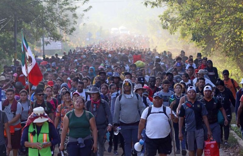 En vísperas de la visita de la delegación estadounidense, una caravana de más de 10.000 migrantes partió en Nochebuena desde la frontera sur de México hacia Estados Unidos.