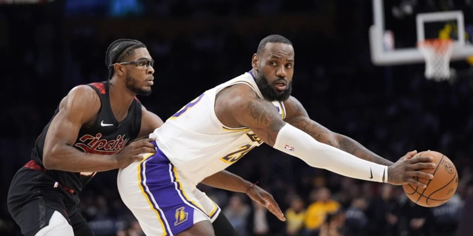 D’Angelo Russell anotó 34 puntos, LeBron James añadió 28 y los Lakers de Los Ángeles se impusieron 134-110 el domingo a los Trail Blazers de Portland para recuperar el balance de .500.