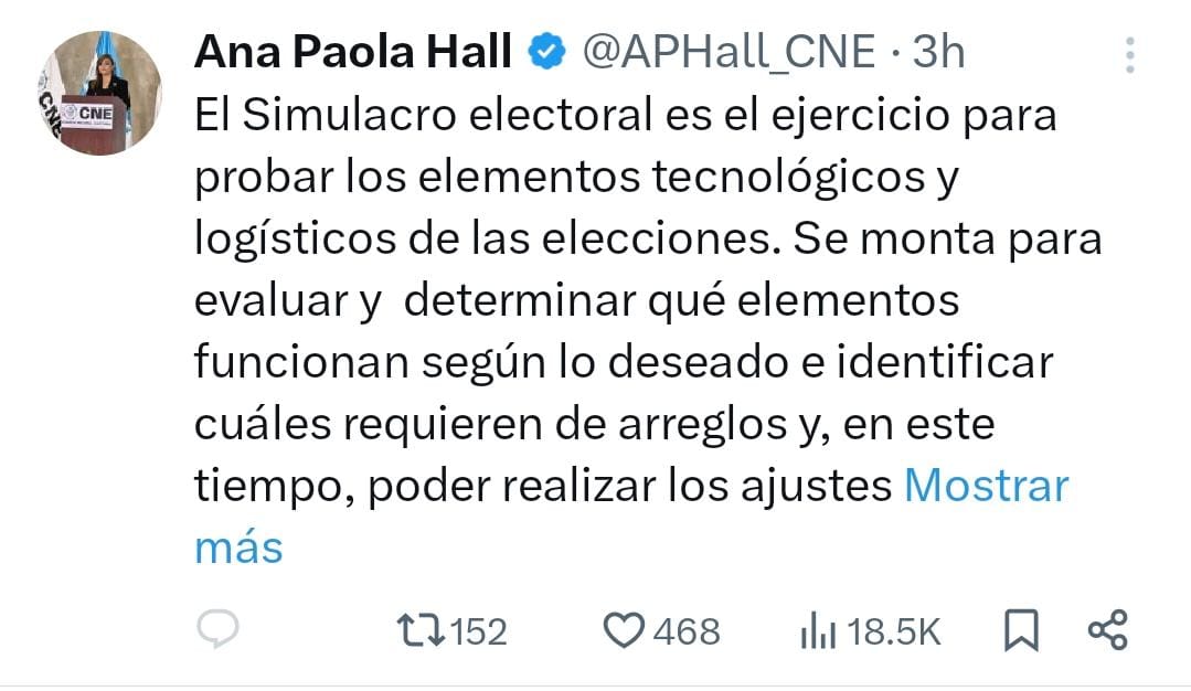 “Informo al pueblo hondureño que el simulacro del sistema de TREP ha fracasado. Esto demuestra que la preocupación sobre el proceso electoral es real y que necesitamos tomar decisiones urgentes para evitar que cualquier irregularidad comprometa las elecciones”, expresó Ochoa a través de sus redes sociales.
